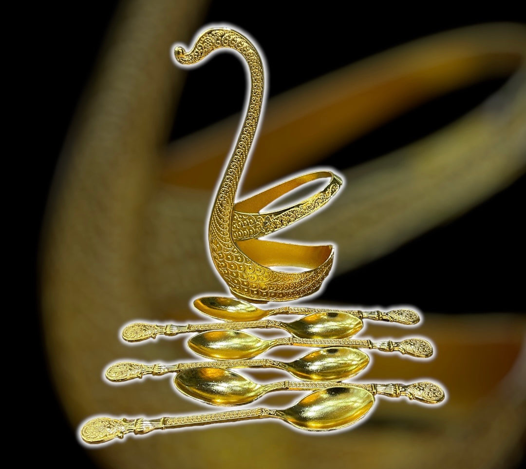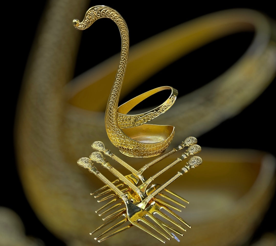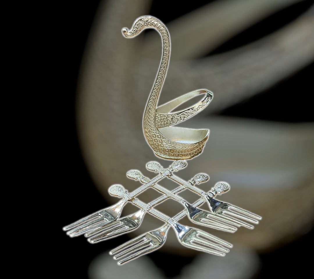 1 Set, Metal Cutlery, Swan Shape Spoon and Fork Holder