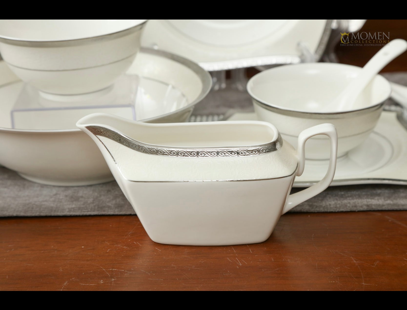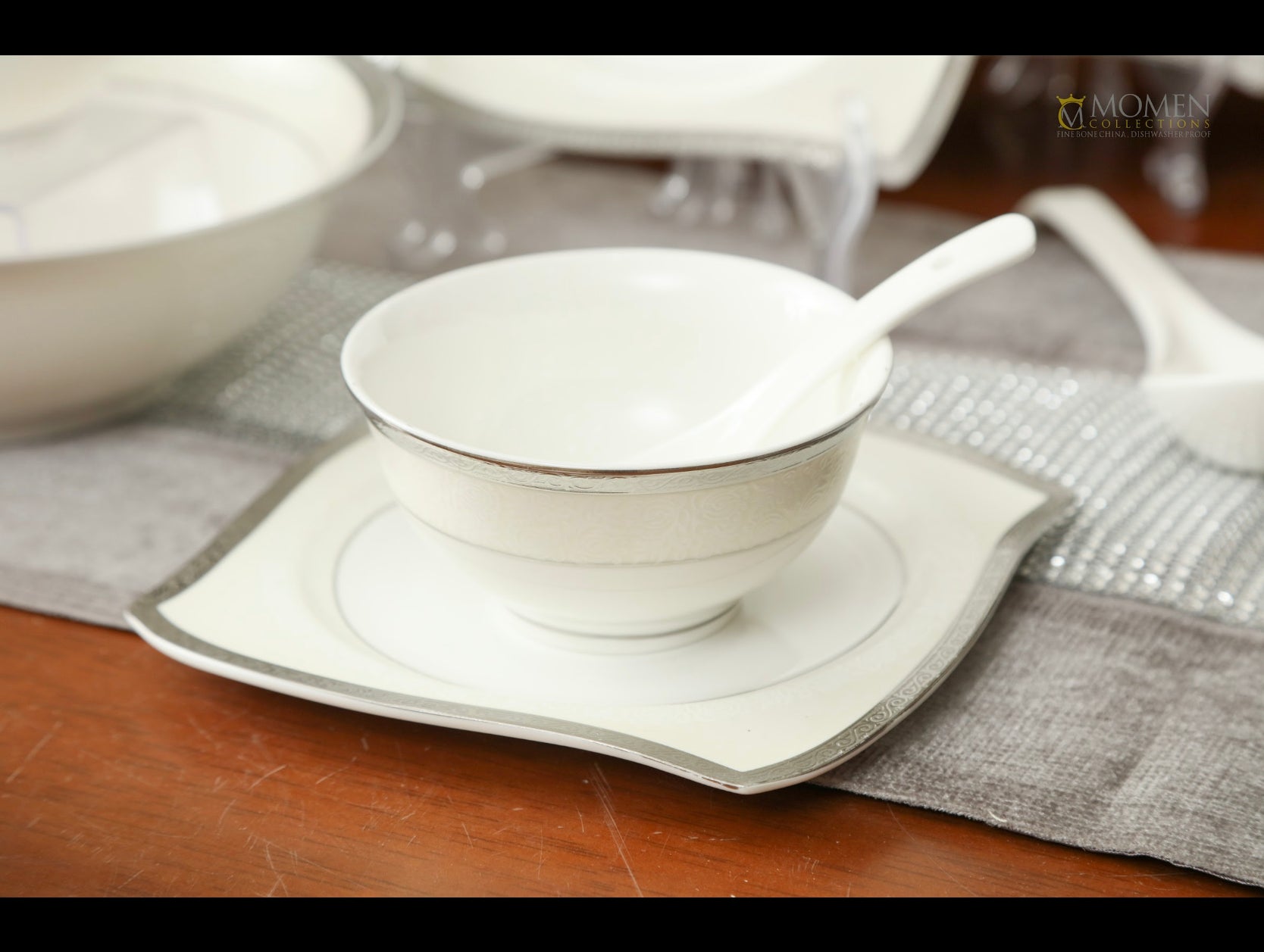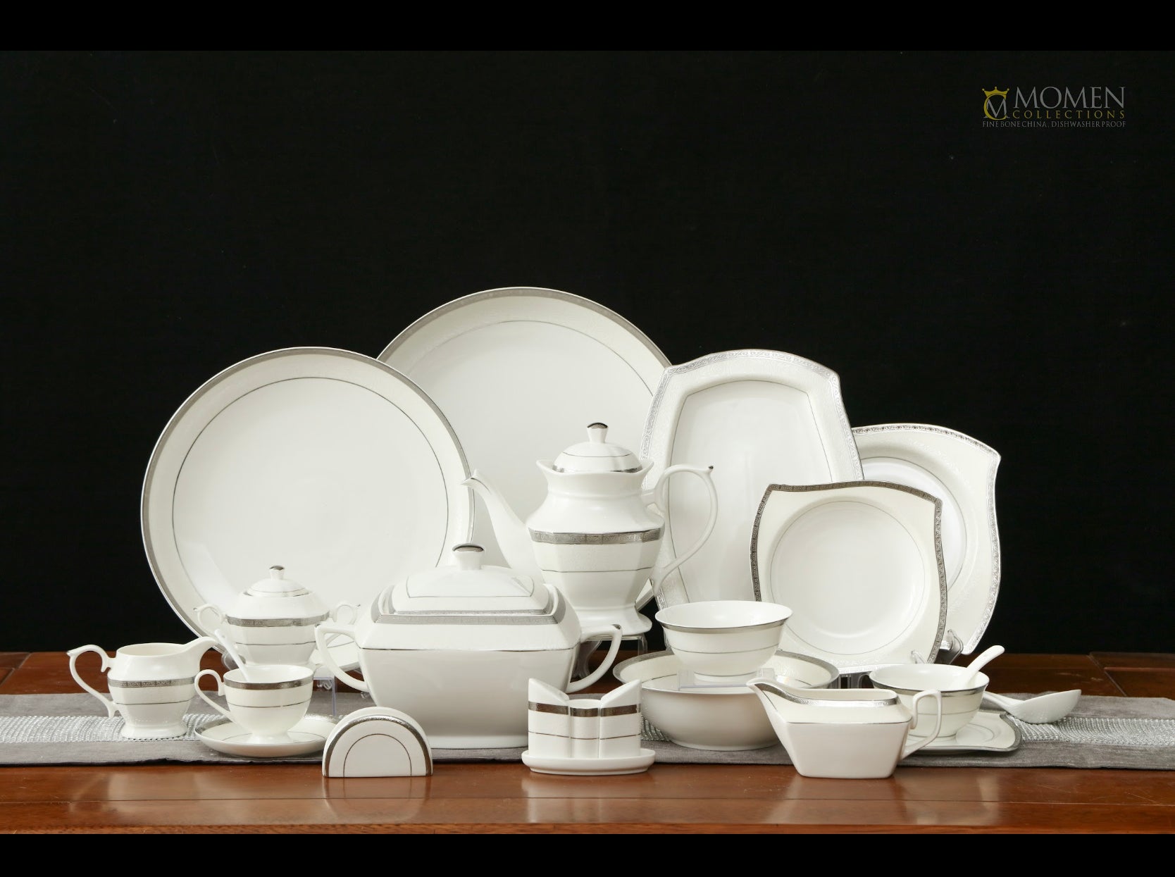 This finebone china dinnerware set is elegant and practical, offering tasteful and high quality table services in a pure style that goes with any ambiance.
