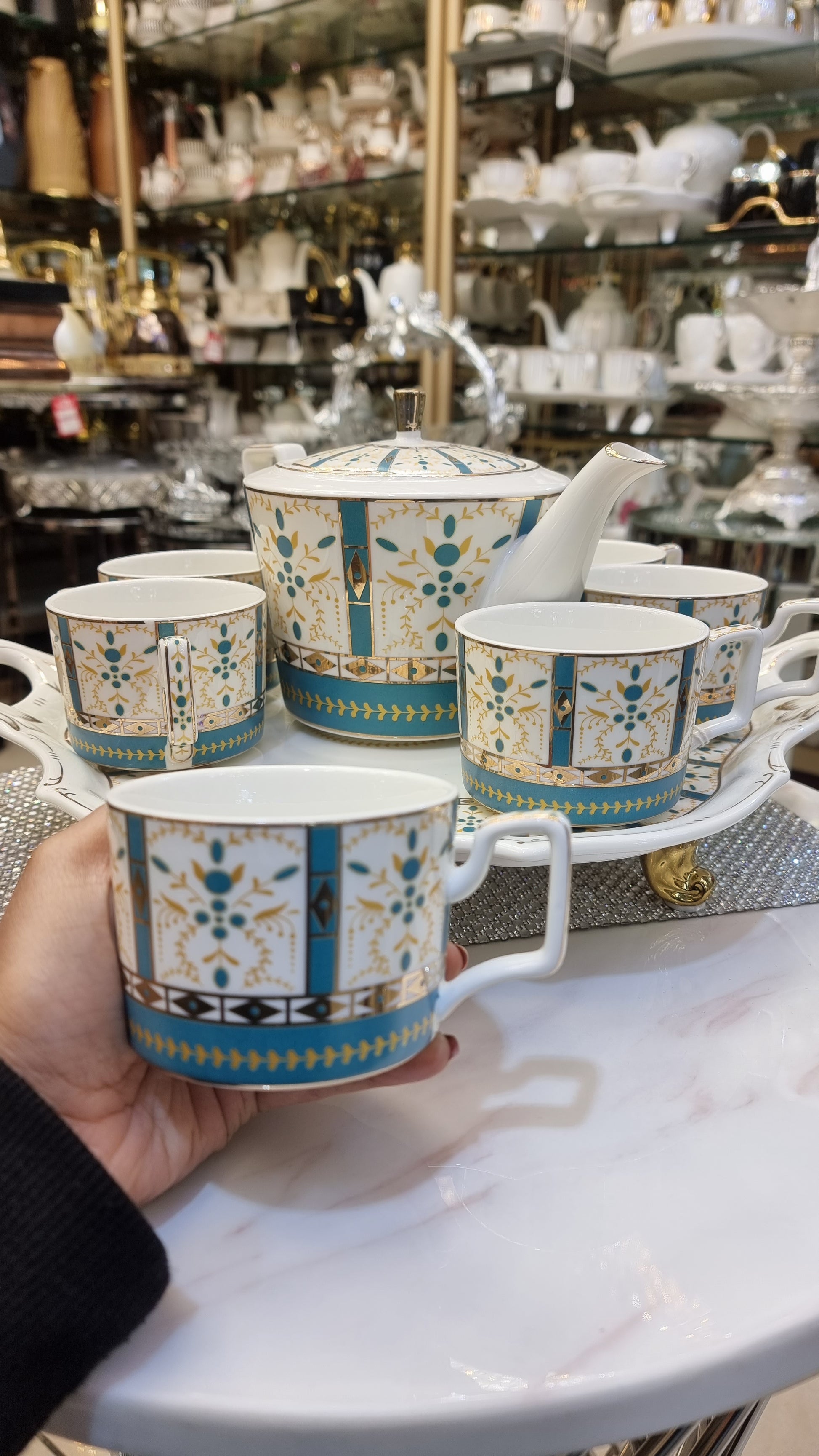 Enjoy your evenings and relax over a cup of hot beverage with the our tea set. Made from good quality material for durability and strength, the elegant design of each item bring a gorgeous image to your table. The colour and intricate decor on the surface add refinement to your table.