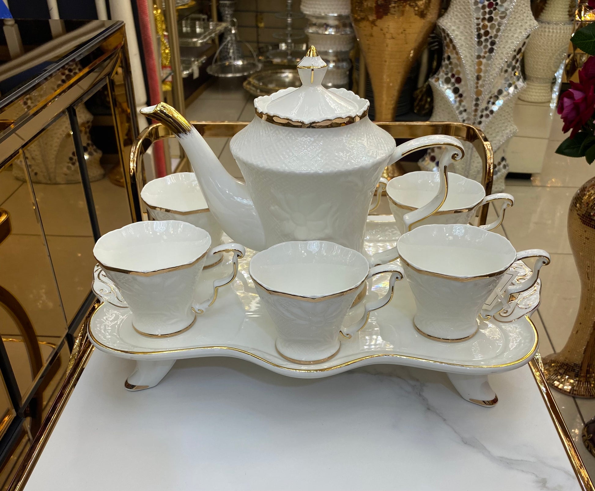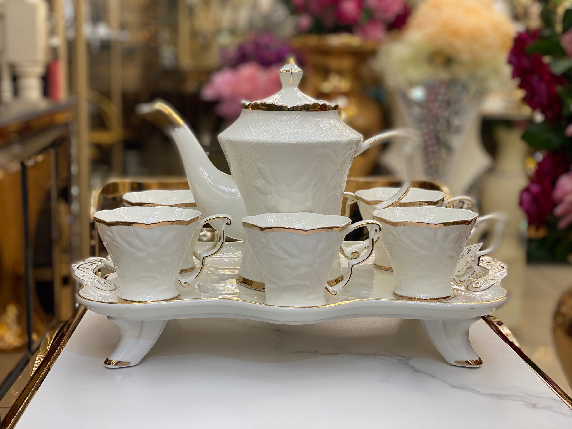 Enjoy your evenings and relax over a cup of hot beverage with the our tea set. Made from good quality material for durability and strength, the elegant design of each item bring a gorgeous image to your table. The colour and intricate decor on the surface add refinement to your table.