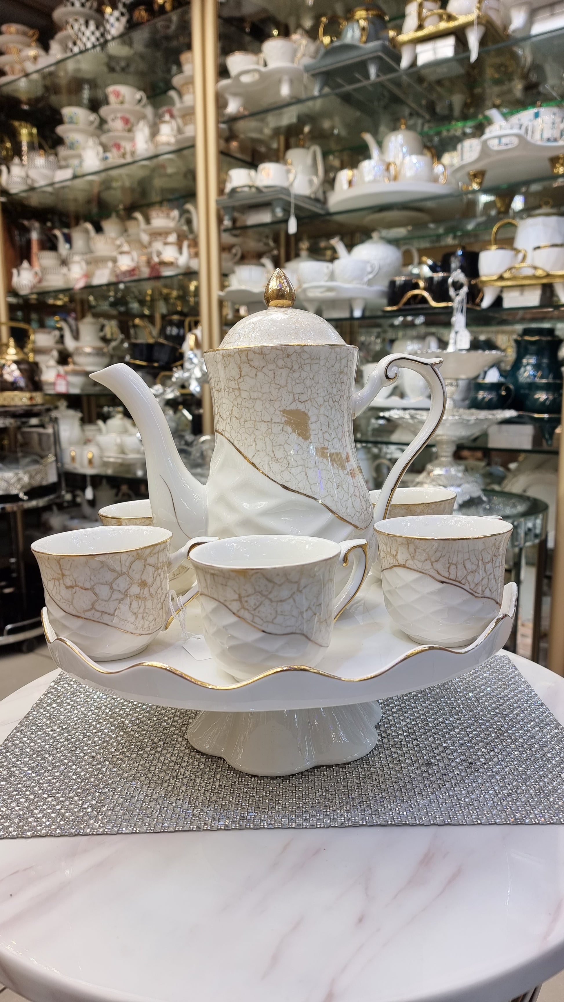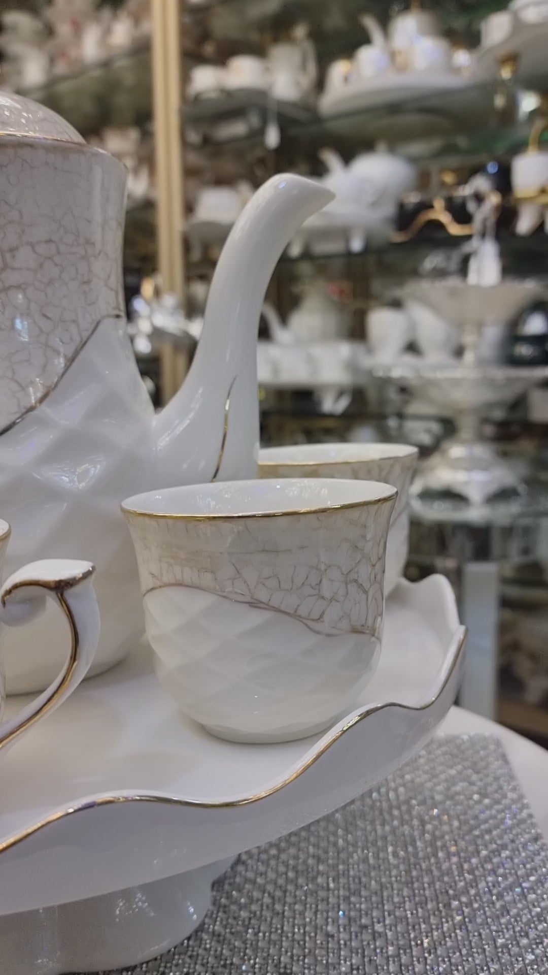 Enjoy your evenings and relax over a cup of hot beverage with the our tea set. Made from good quality material for durability and strength, the elegant design of each item bring a gorgeous image to your table. The colour and intricate decor on the surface add refinement to your table.