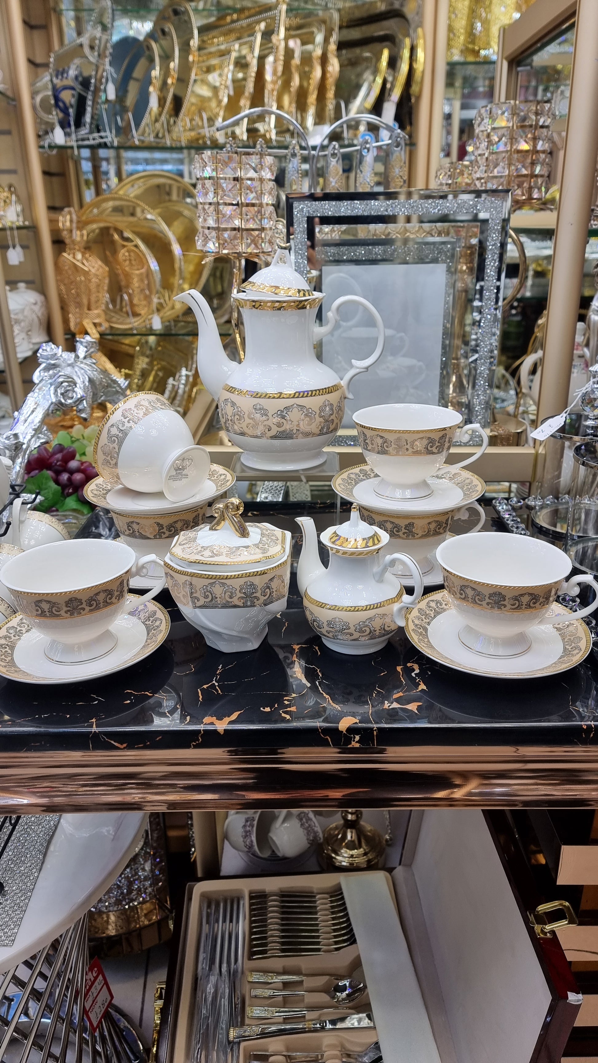 Enjoy your evenings and relax over a cup of hot beverage with the our tea set. Made from good quality material for durability and strength, the elegant design of each item bring a gorgeous image to your table. The colour and intricate decor on the surface add refinement to your table.