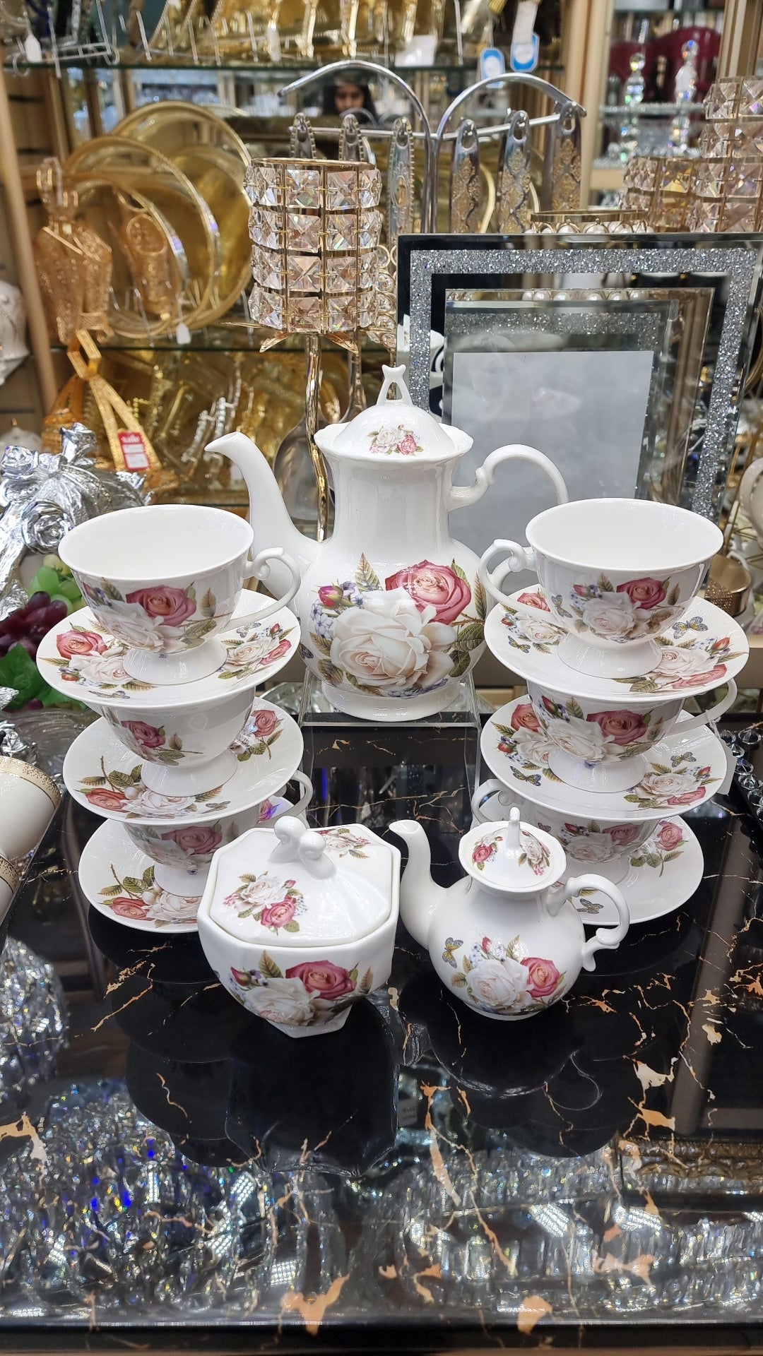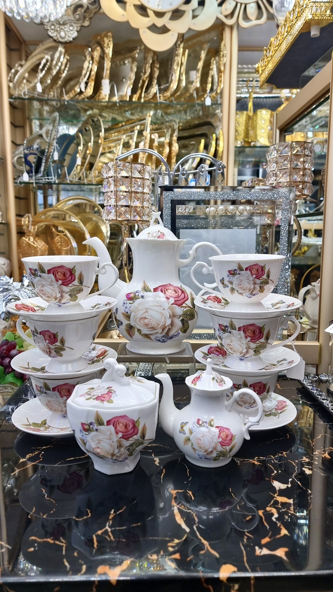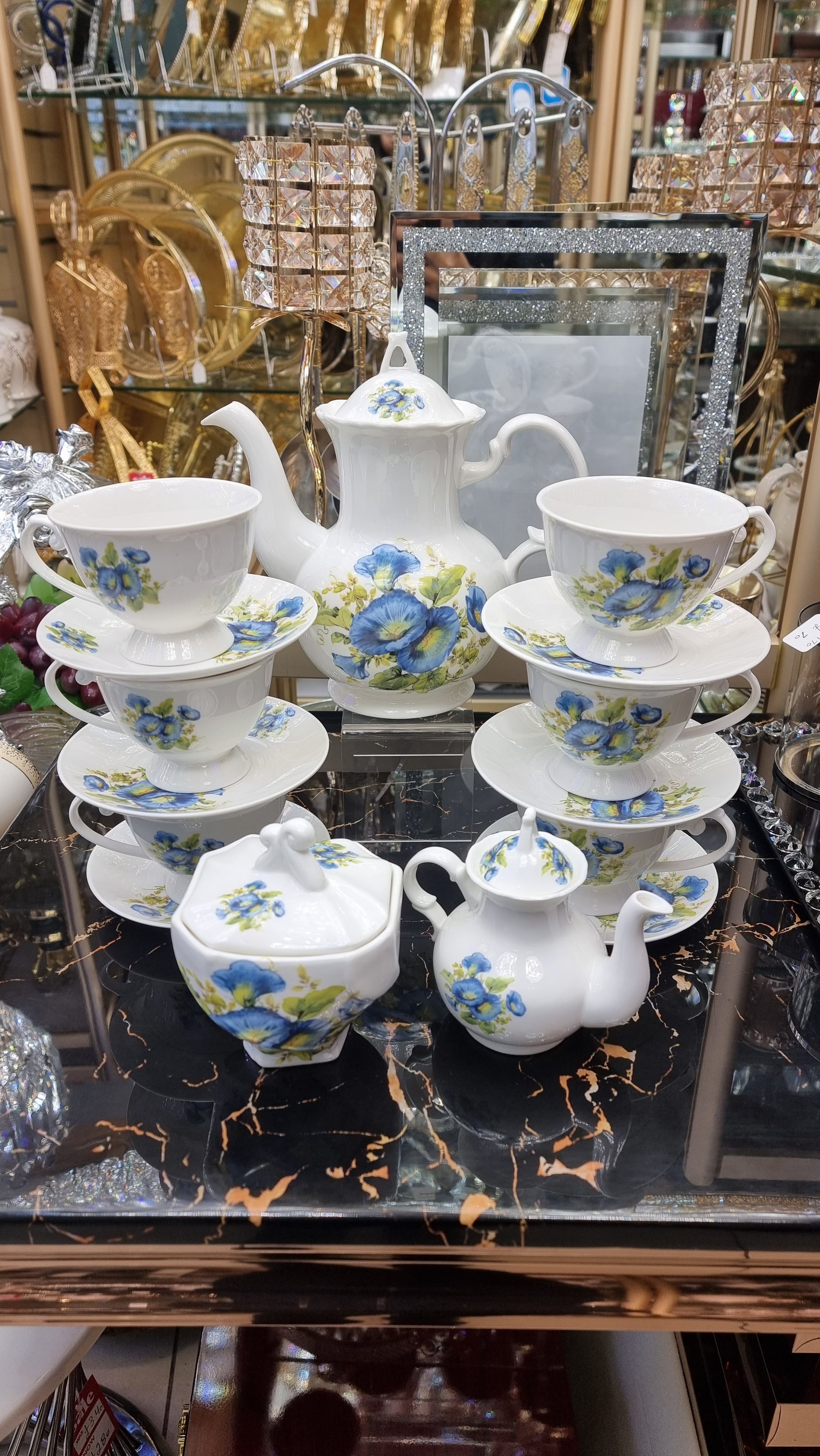 Enjoy your evenings and relax over a cup of hot beverage with the our tea set. Made from good quality material for durability and strength, the elegant design of each item bring a gorgeous image to your table. The colour and intricate decor on the surface add refinement to your table.