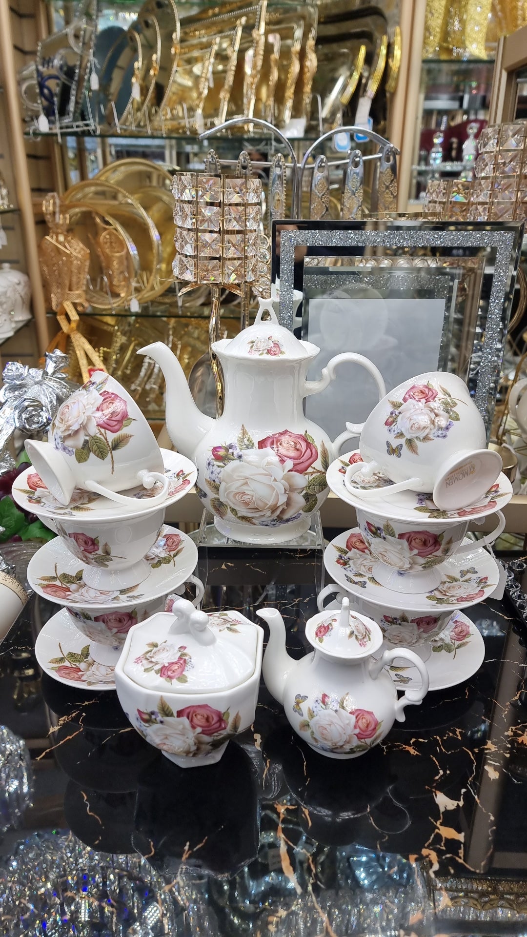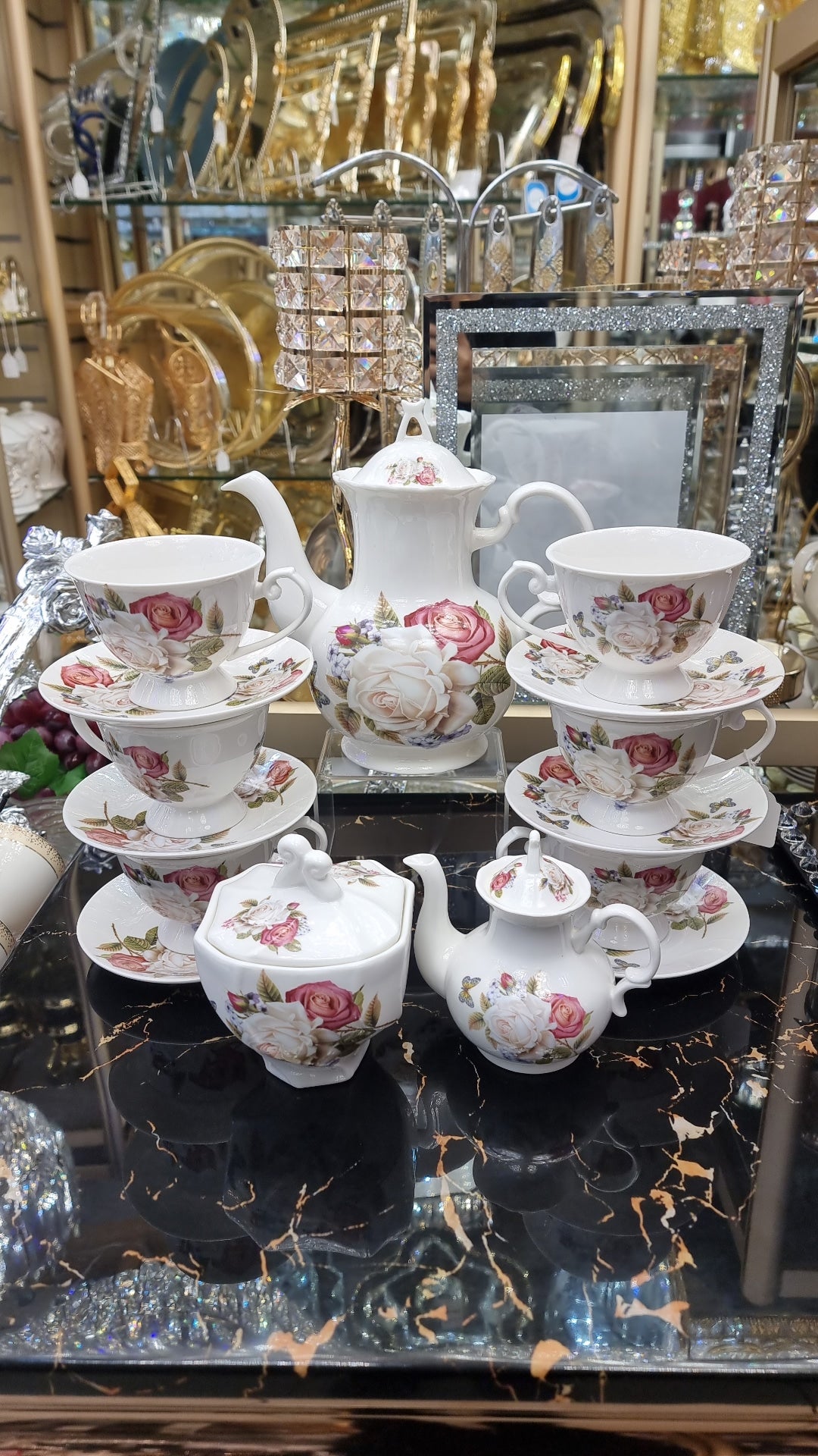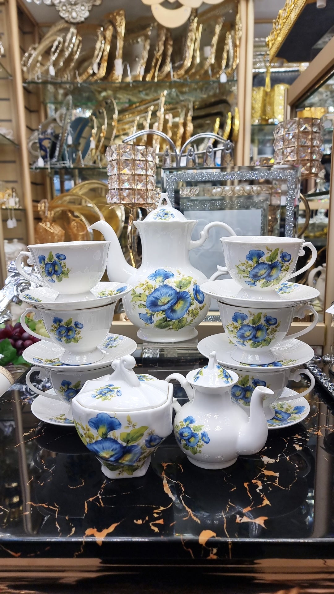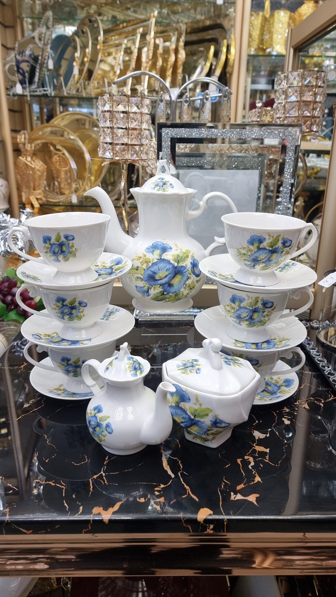 Enjoy your evenings and relax over a cup of hot beverage with the our tea set. Made from good quality material for durability and strength, the elegant design of each item bring a gorgeous image to your table. The colour and intricate decor on the surface add refinement to your table.