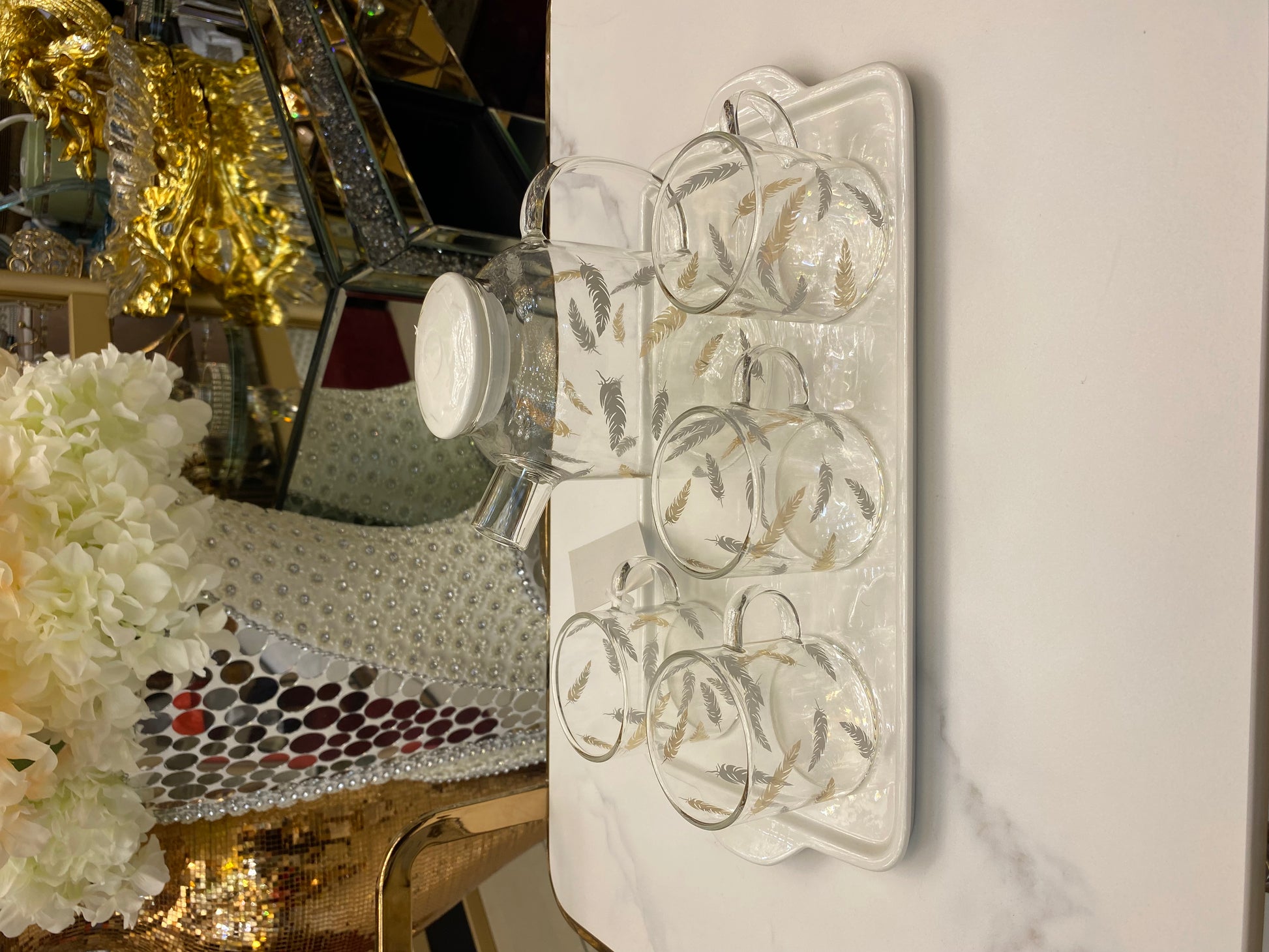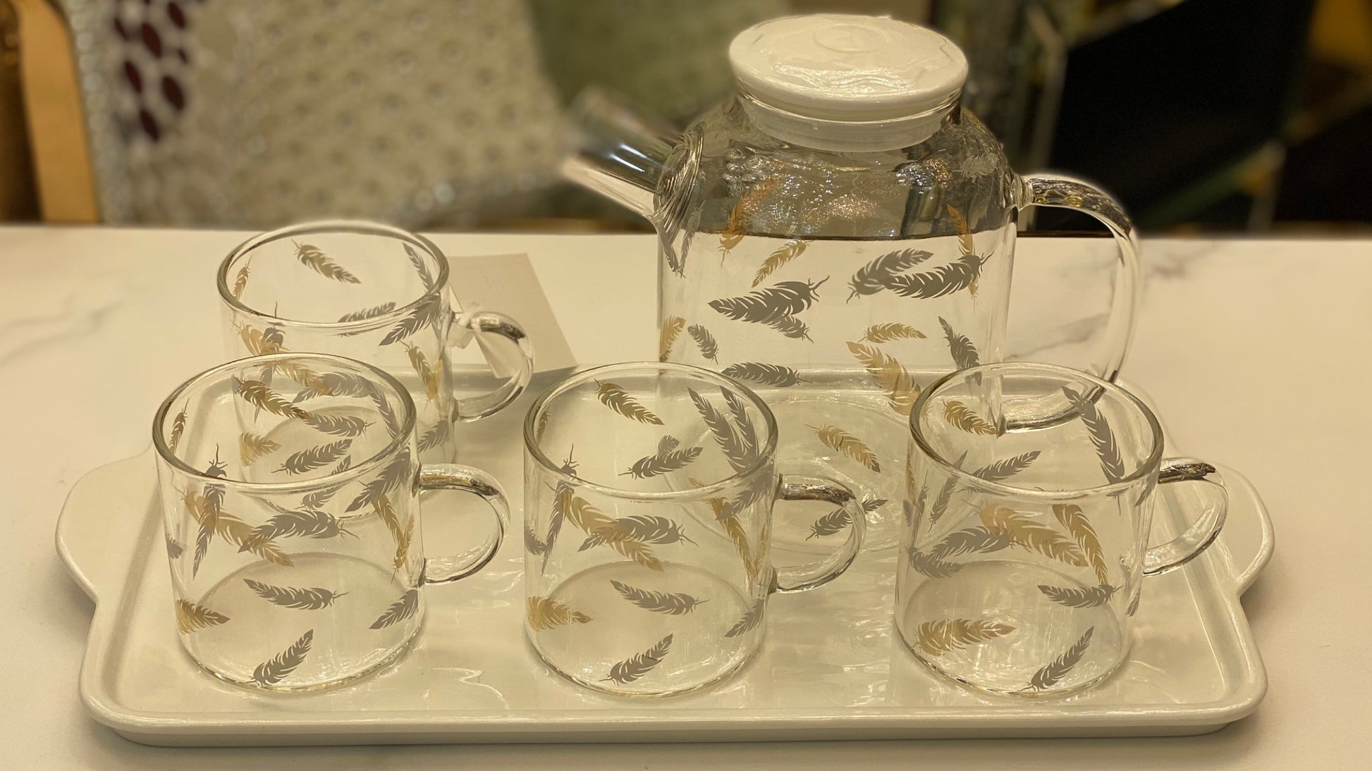 Enjoy your evenings and relax over a cup of hot beverage with the our tea set. Made from good quality material for durability and strength, the elegant design of each item bring a gorgeous image to your table. The colour and intricate decor on the surface add refinement to your table.